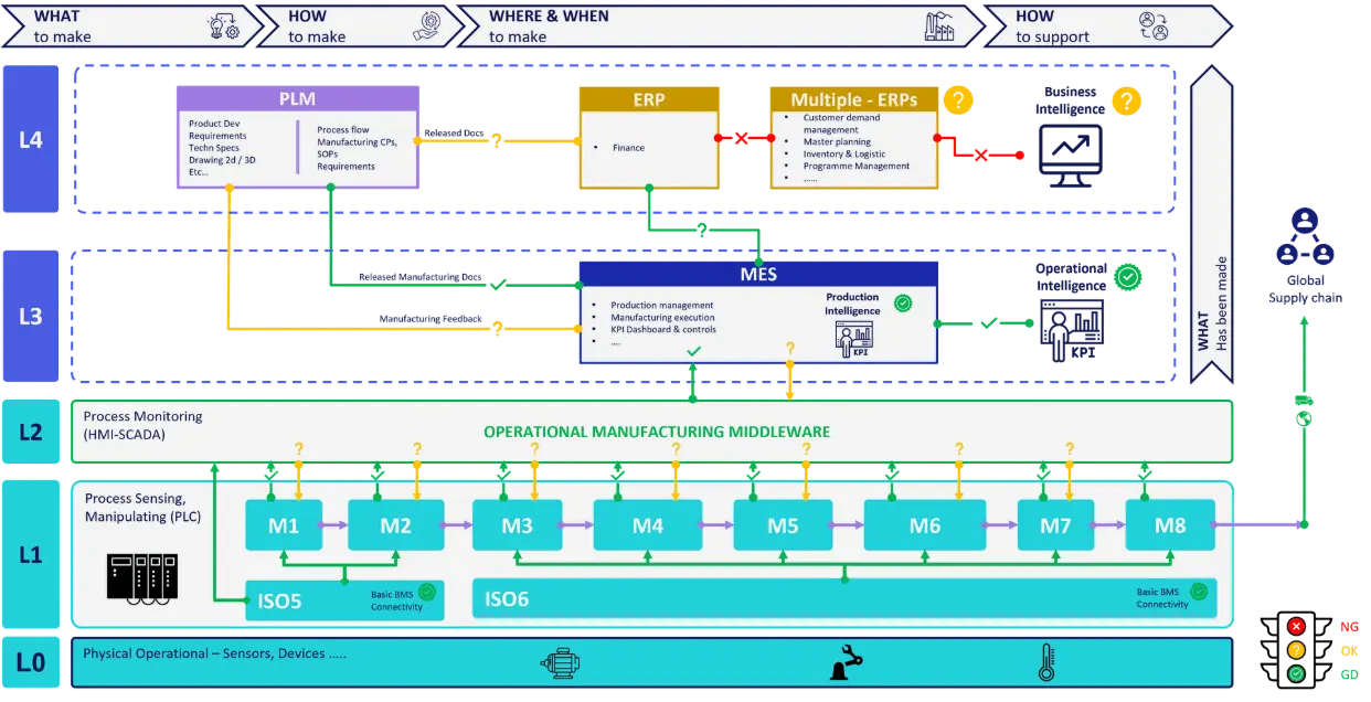 IT & OT Infrastructure - Industry best practice requires segregating industrial machine networks from corporate IT to protect production from cybersecurity threats and ensure operational reliability. This is an area which requires attention to enable a scalable manufacturing operations.